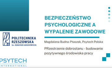 Serdecznie zapraszamy pracowników Politechniki Rzeszowskiej do udziału w webinarium pt. Bezpieczeństwo psychologiczne a wypalenie zawodowe, w dniu 19 lutego br. na platformie Teams.
